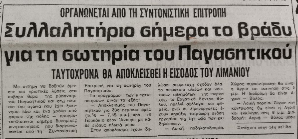 Ο Παγασητικός κόλπος είναι ένα ευαίσθητο οικοσύστημα, με πολύ αργή ανανέωση των νερών του. Έχει, παρόλα αυτά, υποστεί κατά καιρούς διαφόρων ειδών ρυπάνσεις, που έχουν θέσει σε συναγερμό την περιοχή μας η οποία έχει γνωρίσει και τις συνέπειές τους, αφού μεγάλο μέρος της οικονομίας της στηρίζεται στη θάλασσά της. Από την αχυροκυτταρίνη της δεκαετίας του ’60, στην εκτεταμένη ρύπανση που γνώρισε το 1988, περάσαμε στις συνέπειες των πρόσφατων πλημμυρών (λάσπες, σκουπίδια, ψόφια ψάρια) και ο κόλπος δεν έχει ακόμα συνέλθει. Ενώ το LNG δεν πρόκειται να προσφέρει τίποτα στην περιοχή μας θα την θέσει σε περιβαλλοντικούς και άλλους κινδύνους που δεν είναι καθόλου σπάνιοι σε τέτοιου είδους εγκαταστάσεις.